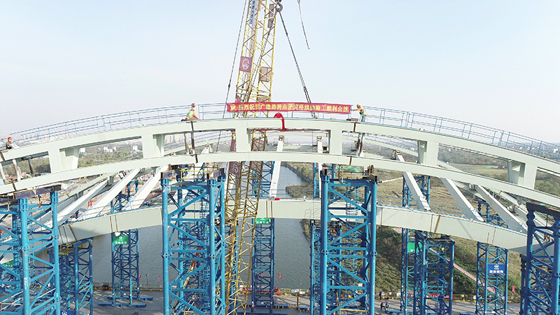 11月11日,隨著最后一段拱肋緩緩吊裝至合龍位置,安徽交建承建的廣德路項(xiàng)目跨南淝河大橋拱肋邊拱順利合龍。至此主橋三拱吊裝施工全部完成,同時(shí)為廣德路跨南淝河大橋通車打下堅(jiān)實(shí)基礎(chǔ)。