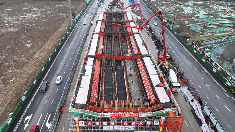2月10日下午2點34分,安徽交建承建的宿松路快速化改造工程2標(biāo)段主線橋首聯(lián)現(xiàn)澆箱梁順利完成澆筑任務(wù),標(biāo)志著我標(biāo)段正式進入橋梁上部結(jié)構(gòu)施工階段。當(dāng)日晚6點繁華大道與宿松路交口二次導(dǎo)改工作順利完成。新一年工程建設(shè)大干快上的沖鋒號就此吹響。