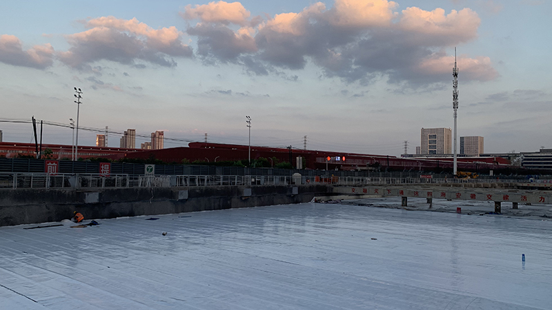 宿松路快速化改造工程地處城市建成區(qū),周邊環(huán)境復(fù)雜,施工面臨地下管網(wǎng)縱橫交錯(cuò)、基坑開挖深度大、結(jié)構(gòu)防裂、防水要求高等難題。面對(duì)復(fù)雜而苛刻的條件,安徽交建項(xiàng)目部實(shí)現(xiàn)了多項(xiàng)行業(yè)“首創(chuàng)”:針對(duì)市政干作業(yè)基坑圍護(hù)樁垂直度控制不佳,我部采購(gòu)2臺(tái)RSM-HGT(D)型超聲波成孔質(zhì)量檢測(cè)儀對(duì)樁基垂直進(jìn)行檢測(cè)、及時(shí)糾偏;施工過程中使用全站儀對(duì)旋挖鉆機(jī)桅桿垂直度進(jìn)行檢查、糾偏;為有效控制地道側(cè)墻混凝土裂縫,選擇摻加ART-MPC無機(jī)納米抗裂密實(shí)劑,提高混凝土抗裂性。養(yǎng)護(hù)采用水能量節(jié)水保濕養(yǎng)護(hù)膜,將液態(tài)水轉(zhuǎn)化為固態(tài)水,通過毛細(xì)管作用,源源不斷的向養(yǎng)護(hù)面滲透,同時(shí)吸收砼水化熱過程中蒸發(fā)水,在一個(gè)養(yǎng)護(hù)周期內(nèi)保證養(yǎng)護(hù)體表面保持濕潤(rùn),相對(duì)濕度≥90%;為避免變形縫滲水情況,施工過程中增設(shè)一道中埋式止水帶。同時(shí)針對(duì)止水帶安裝及焊接等薄弱環(huán)節(jié)加強(qiáng)控制,安排固定人員培訓(xùn),舉辦焊接比賽,提升焊接技術(shù)。